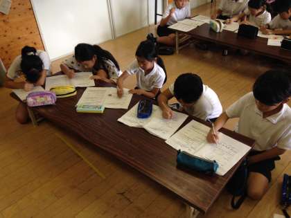 今日の学習は、リズムマスターに来ていただいて、音楽の3要素(リズム、メロディー、ハーモニー)を教えていただいたり、音のしぐみについて教えていただいたりしました。最後には校歌の表拍と裏拍をとってリズム遊びを楽しみました。