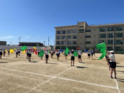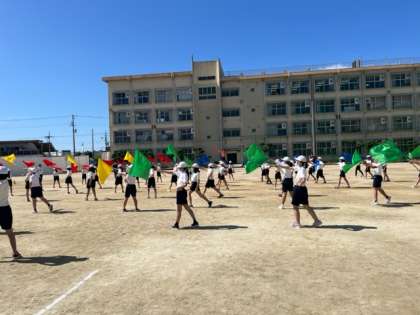 暑い中でしたが、ダンスやフラッグを頑張っています。6年生にとっては小学校最後の運動会です。やり切った達成感を感じて欲しいですね。