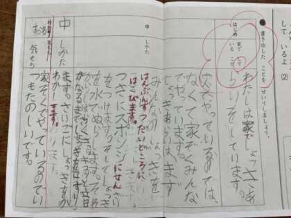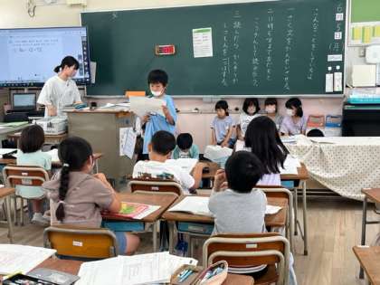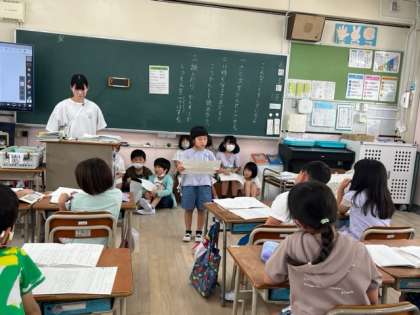 2年生は出来事を作文にする学習をしています。「はじめ・中・おわり」と文章を構成していきます。みんなの前でもしっかり発表することができました。
