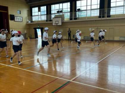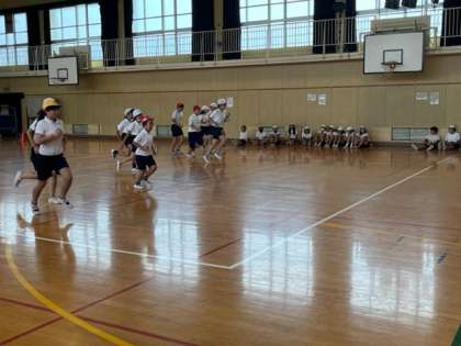 6年生は20mシャトルランを行いました。リズムに合わせて時間内に20mを往復します。日頃からよく運動している子は90回を超える記録を出していました。