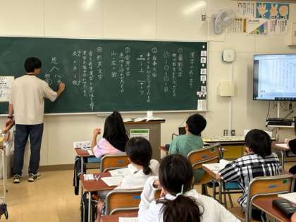 5年生は国語科で漢字の成り立ちについて学習中です。形を表した漢字や意味や音を表す漢字などを種類分けしていきます。これはどっちや〜??と悩みながら頑張っています。