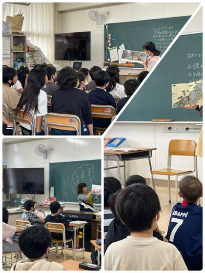 今日は、1年、2年、4年、5年の読み聞かせです。