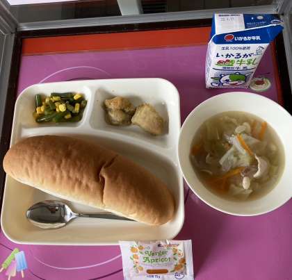 鶏肉のカレー風味焼き てぼ豆のスープ