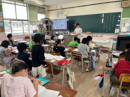 2年生は物語文の学習をしています。音読をして、登場人物や時間、場所などを整理しながら読み進めていきます。