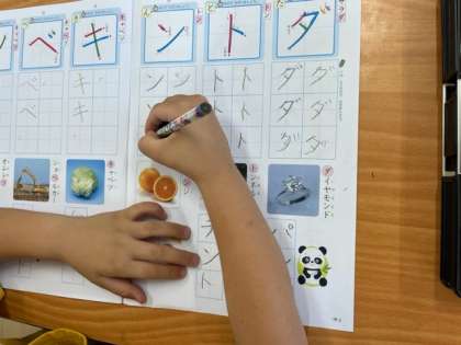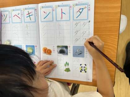 お手本をよく見て丁寧に書いています。お家でもカタカナや漢字を使って一緒に学習して下さいね。