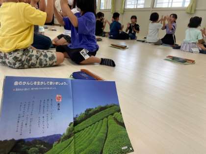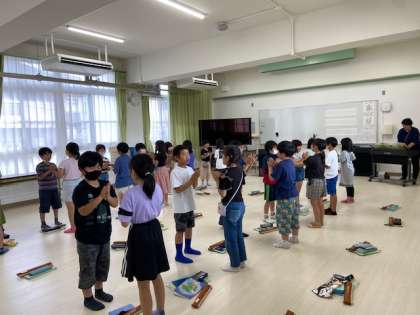 音楽室から、とても明るい歌声と手拍子する音が聞こえてきました。4年生では、「茶つみ」を学習しています。ちょっとまちがえても平気。笑顔で向き合う様子がとても素敵でした。