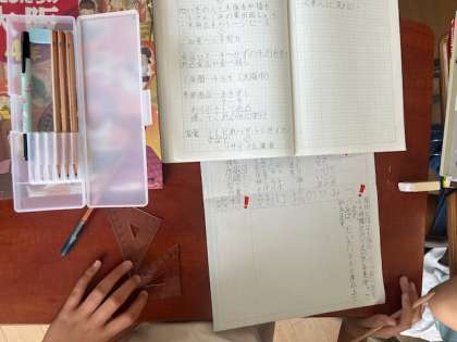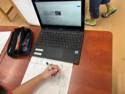 4年生は社会見学に行って学んだことを新聞にまとめています。今日はレイアウトした新聞に記事を書きこんでいきます。どんな新聞が完成するか楽しみです。