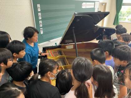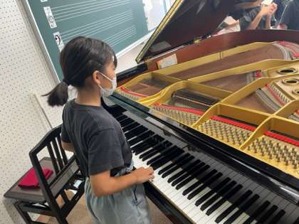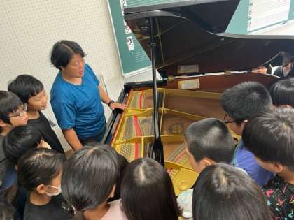 音楽室も新しくなり、グランドピアノも戻ってきました。今日はピアノの音がなる仕組みや、調律について学習しました。最後は1人ずつピアノで音を出して、鍵盤を押す感覚を確かめていました。