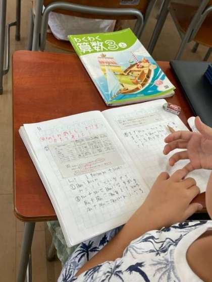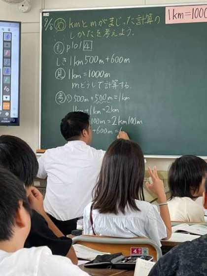 長さの単位がちがう計算の仕方を学習しています。長さの計算は、同じ単位にそろえて、たしたり引いたりして計算します。