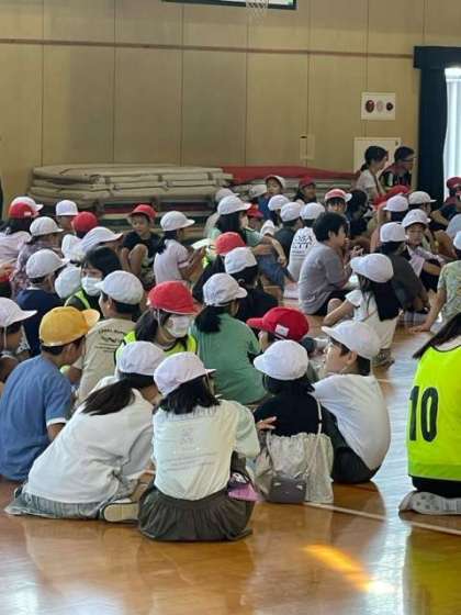 たてわり班での活動です。「何人通ったでしょうか」のゲームを班で協力して答えます。