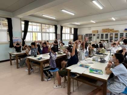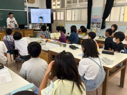 5年生は実験に使う器具の勉強です。今日は先生が作成した◯×クイズで楽しく学習しました。みんな学習したことをよく覚えています。
