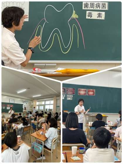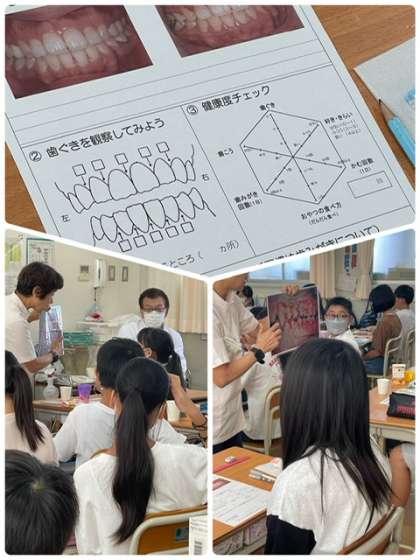 歯科校医先生、歯科衛生士の方から歯の健康について学習しました。歯垢や歯周病が引き起こすことなどを、実際自分の歯について染み出しをしながら、学習しました。