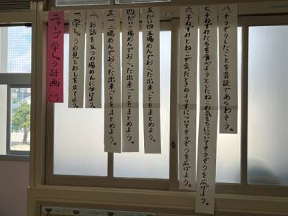 2年生は「ニャーゴ」物語文の学習を進めています。今日はニャーゴという鳴き声から登場人物の気持ちを想像する学習です。言葉は同じでもその時の気持ちとなると様々な意見が出てきます。