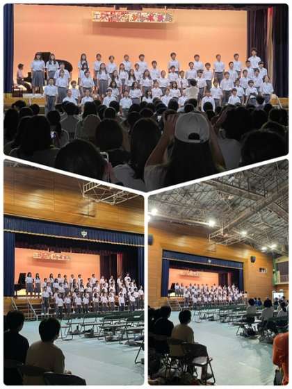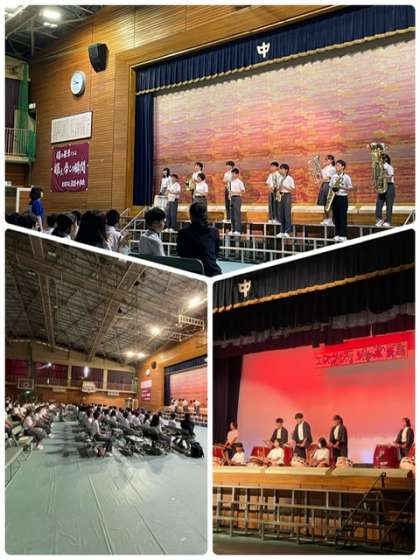 6年生は舞台発表から鑑賞しています。吹奏楽部のファンファーレからスタートです。合唱コンクールも迫力がありました。
