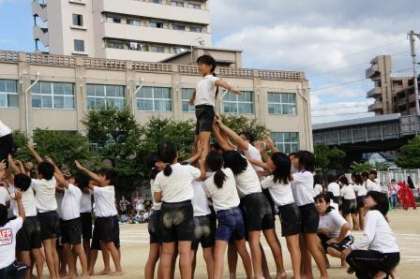 力を合わせて、踏ん張り、音楽に合わせて動きを作っていきました。