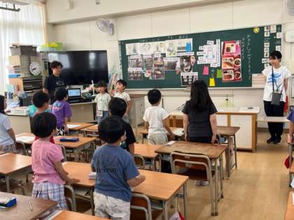 1年生は栄養教諭に給食について教えていただきました。給食を作っている様子や調理器具などを見せていただきました。子どもたちも「知ってるー」と言いながら学習していました。感謝しながら給食を残さずに食べてほしいです。