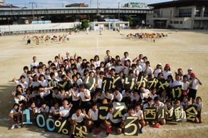 『100%をこえろ ひとりひとりがかがやけ 西小運動会』