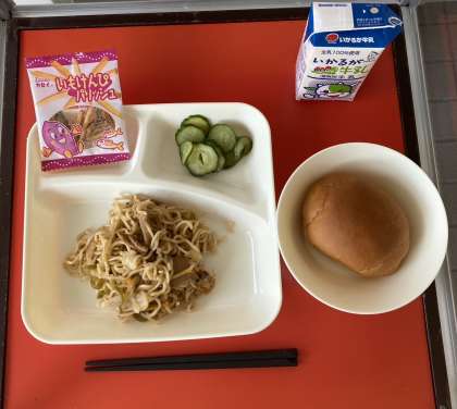 国産のかたくちいわしとさつまいもを使っています。今回初めて給食に登場します。