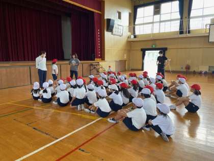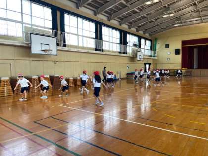 今日は、東淀川支援学校のお友だちが交流に来てくれました。体育で準備運動をしたり、コーンの的を狙ってボールを蹴ったりしました。並ぶ場所やボールの受け渡しなどの場面で優しく声をかける姿も見られ、最後は「また来てねー」と話してさようならする様子が見られました。