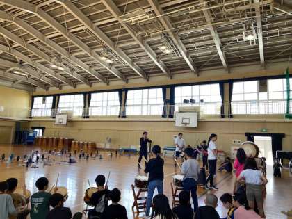 4年生は、来月参加予定の東淀川ドコドコドンに向けて和太鼓の練習に励んでいます。今日は、一定のリズムに合わせて太鼓を叩く練習をしました。友だちが叩くリズムにつられないよう、お互いに手の動きも見ながら演奏しました。