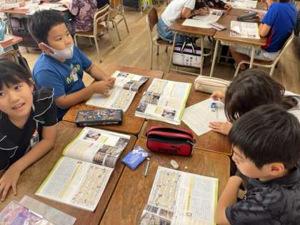 3年生は昨日セブンイレブンへ社会見学へ行きました。明日は1組が社会見学へ行くので、今日はその準備をしています。どんなことを質問しようかとグループで話し合っています。