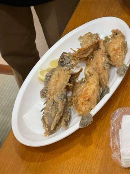 活動プログラムで釣った魚をから揚げにしていただきました。