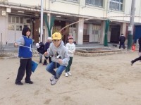 今日は運動朝会です。朝は気温が下がってきたので、温まるように体を動かします。リズムに合わせてみんなでジャンプ。色んなジャンプの仕方で運動しました。