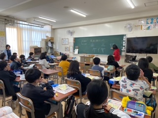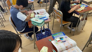 5年生では裁縫道具を使って手縫いを学習しています。細かい作業になりますが、みんなあきらめずに頑張っています。