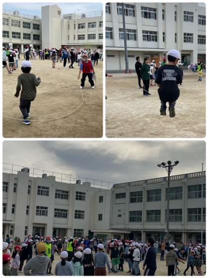 今日は運動場で大縄跳びをしました。高学年が縄を回してみんなが跳べるようにしてあげています。低学年も頑張ってチャレンジしていました。また、後期の学級代表のあいさつもありました。色んなアイデアで学校を盛り上げてくれそうです。