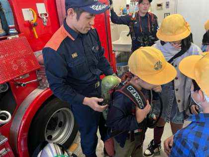 3年生は東淀川消防署の西淡路出張所へ見学へ行きました。消防車や救急車の中、どのような事ができるのか説明していただきました。人命を守るための道具を持たせていただいたり、救急車に乗車させていただいたりしました。