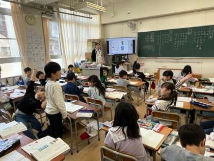 今日はまとめてよぶ言葉について学習しています。食べ物や乗り物などたくさんの言葉が出て来ました。みんなよく知っているなぁ〜と感心しました。