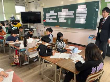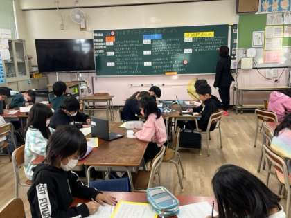 4年生は算数科の小数のかけ算でした。考え方をみんなで共有し、練習問題にチャレンジします。位に気をつけながら頑張って計算していました。