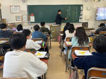 6年生は社会科の学習でした。江戸時代の文化にキャッチフレーズをつけました。最後は保護者の皆様も一緒にクイズをしました。盛り上がったでしょうか?