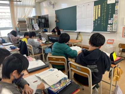 5年生は国語科の授業でした。和語、漢語、外来語をグループ分けし、身近な外来語について考えました。とっても静かな教室で、集中している様子が伝わりました。