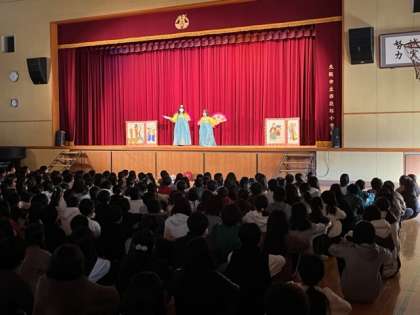今日は子ども会の発表を行いました。プチェチュム(扇の舞)を披露し、とても綺麗でした。また、韓国・朝鮮について学んだことや、市内のイベントに参加したことなどをクイズにして発表しました。集まった子どもたちも楽しそうに、参加していました。