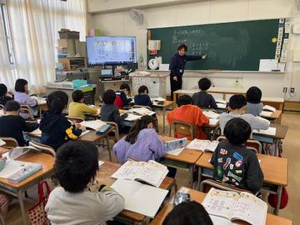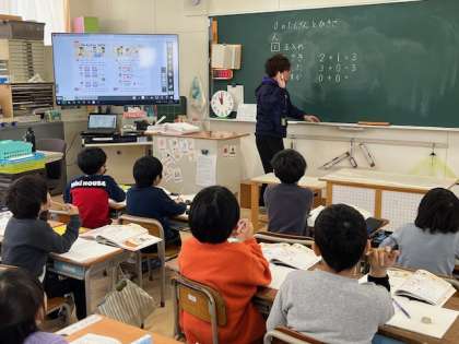 一年生は算数科の学習です。今日は0のたし算引き算です。子どもたちは「かんたんや〜」と自信満々に立式し、計算していました。2学期のまとめの時期になりました。やり残しがないように頑張っています。