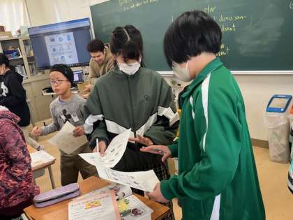 6年生の外国語は「My best memory」を交流する学習です。小学校の生活の中での行事や学習を英語で説明しています。たくさんの友だちとのコミュニケーションも英語で伝え合います。やっぱり1番の思い出は修学旅行でした。
