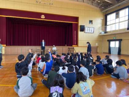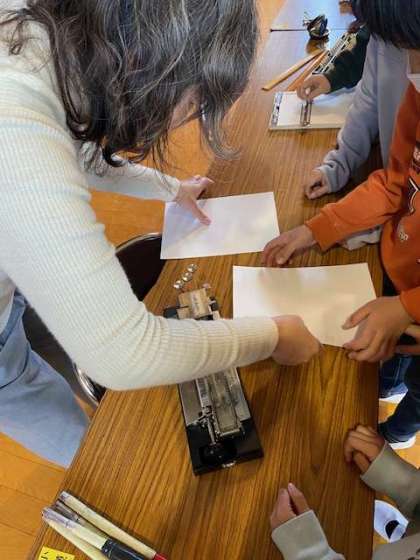 視覚障がいの講話をお話いただきました。久部さんからは、日常生活で困ることや助かること、また小学生の頃に使われていたタイプライターやそろばんについても紹介していただきました。子どもたちからは、杖の使い方など、具体的にどのように行動されて過ごしているかなどの質問がたくさん出ました。これからも障がいのある人だけではなく、みんなが助かる社会にできたらいいねとお話いただきました。