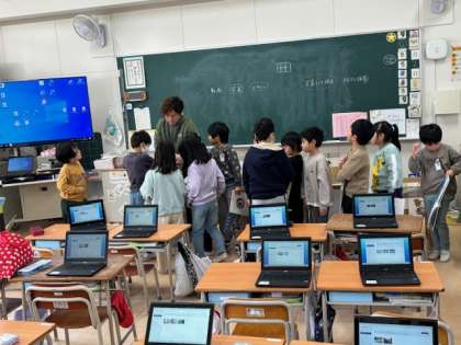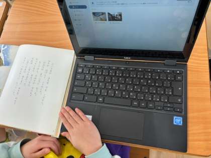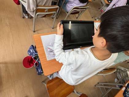 1年生は図画工作科で国語科で読んだ昔話の絵を描きます。今日はタブレットでお気に入りの場面の写真を撮っています。これからその写真を絵に描いていきます。どんな作品ができるか楽しみです。