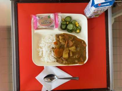 スイートポテトは、さつまいもにさとうやバター、牛乳、クリーム、卵などを使って作られます。今日の給食ではバターや牛乳、クリーム、卵を使っていないスイートポテトです。