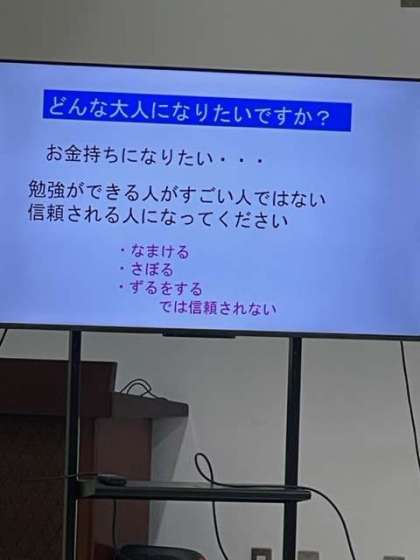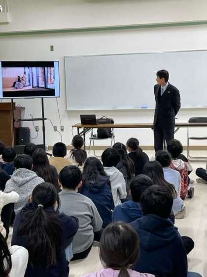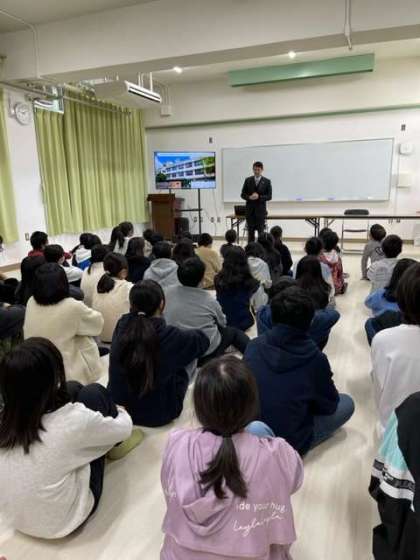 6年生全員で、キャリア教育の学習として、大学より講師先生をお招きして、これから迎える節目のときこそ将来の生き方やものの考え方などについてお話をききました。