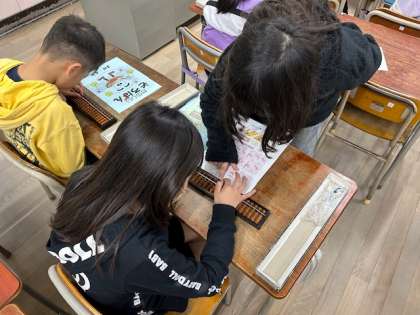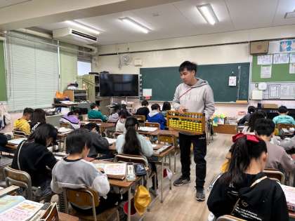 3年生ではそろばんの学習をしています。一だまずつはじき、十の位、百の位へと繰り上げて計算します。足したり引いたり、ゆっくり覚えていきますが、つまずいた時にはそろばん先生のお友だちに教えてもらいながら頑張りました。