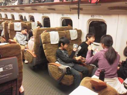 グリーン車なみの座席でみんなリラックス。