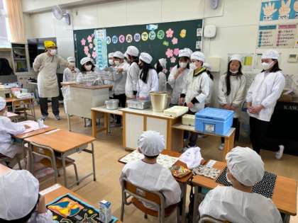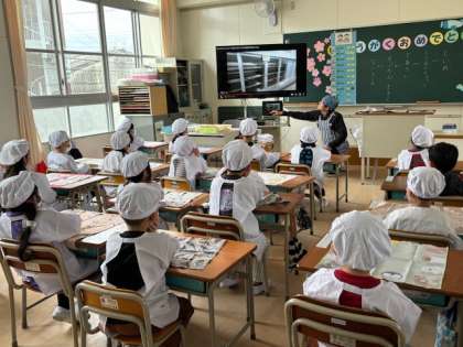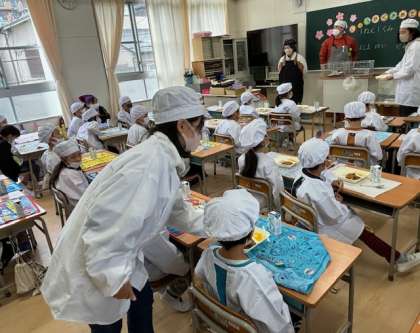 今日から1週間6年生が1年生の給食を配膳してくれます。6先生も優しく、ニコニコしながら1年生の給食を配膳してくれています。優しいお兄さんお姉さんで本当に頼もしいです。1年生もよく見て、来週からは自分たちでがんばってくれると思います。