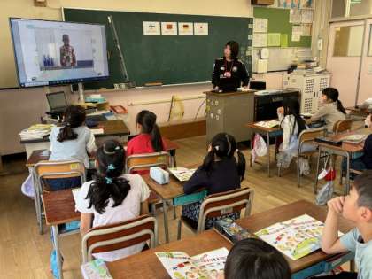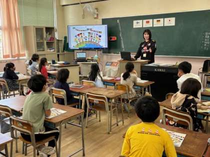 3年生も外国語活動が始まりました。今日も中学校の先生と一緒に「世界のこんにちは」を学習しました。国名の言い方も日頃子どもたちが呼んでいる国名と違う場面があり、驚いていました。楽しみながら外国語に慣れ、親しんでもらえるように、担当の先生方も工夫されています。