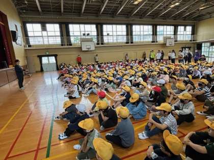 今日は全校で避難訓練を行いました。火災を想定し、放送の指示を聞いて避難する訓練です。子どもたちは避難経路を確認し、ハンカチで口を抑えながらスムーズに避難することができました。今年度も4回の避難訓練を計画しています。子どもたちが自分の身を守るための知識を身につけ、冷静に行動できるように話をしています。ご家庭でも家族で防災について話をして備えていただければと思います。