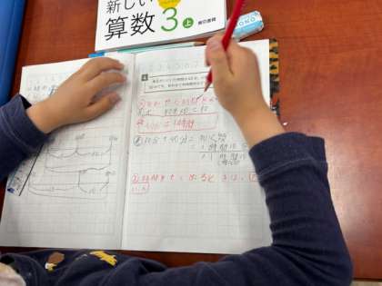 3年生は算数科で時間の学習をしています。今日は時間を合わせる学習をしています。30分と40分を合わせて何時間何分でしょうか。子どもたちも単位に気をつけながら計算しています。練習問題にも意欲的に取り組む3年生はとてもよく頑張っています。