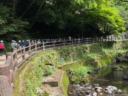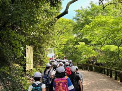 4年生は電車を乗り継ぎ箕面へやってきました。山道に入ると街中より涼しく、登って行くには最高のコンディションです。これから昆虫館を目指します。