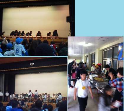 毎年、淡路中学校校下の様々な団体が一堂に集まって、地域のお祭り『AWAKYOカーニバル』を開催しています。模擬店あり、献血や防災の取り組み、そして舞台発表にフリーマーケットと、盛りだくさんのイベントです。