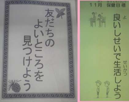 11月が始まって、1週間が過ぎました。今月の生活目標や保健目標が達成できるように取り組んでいきましょう。